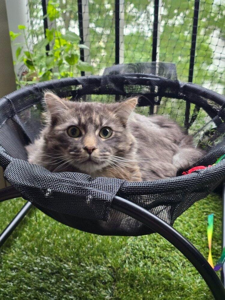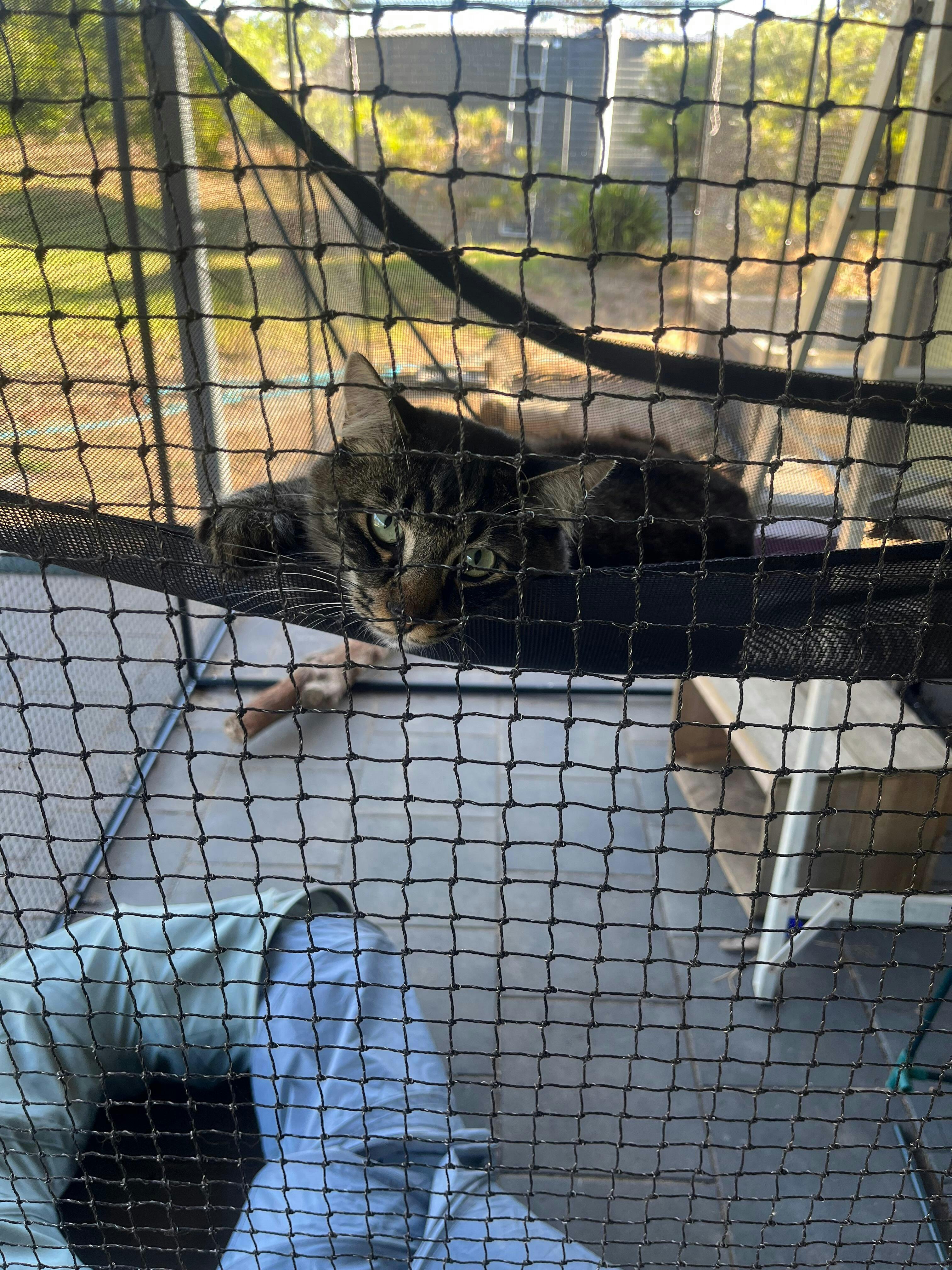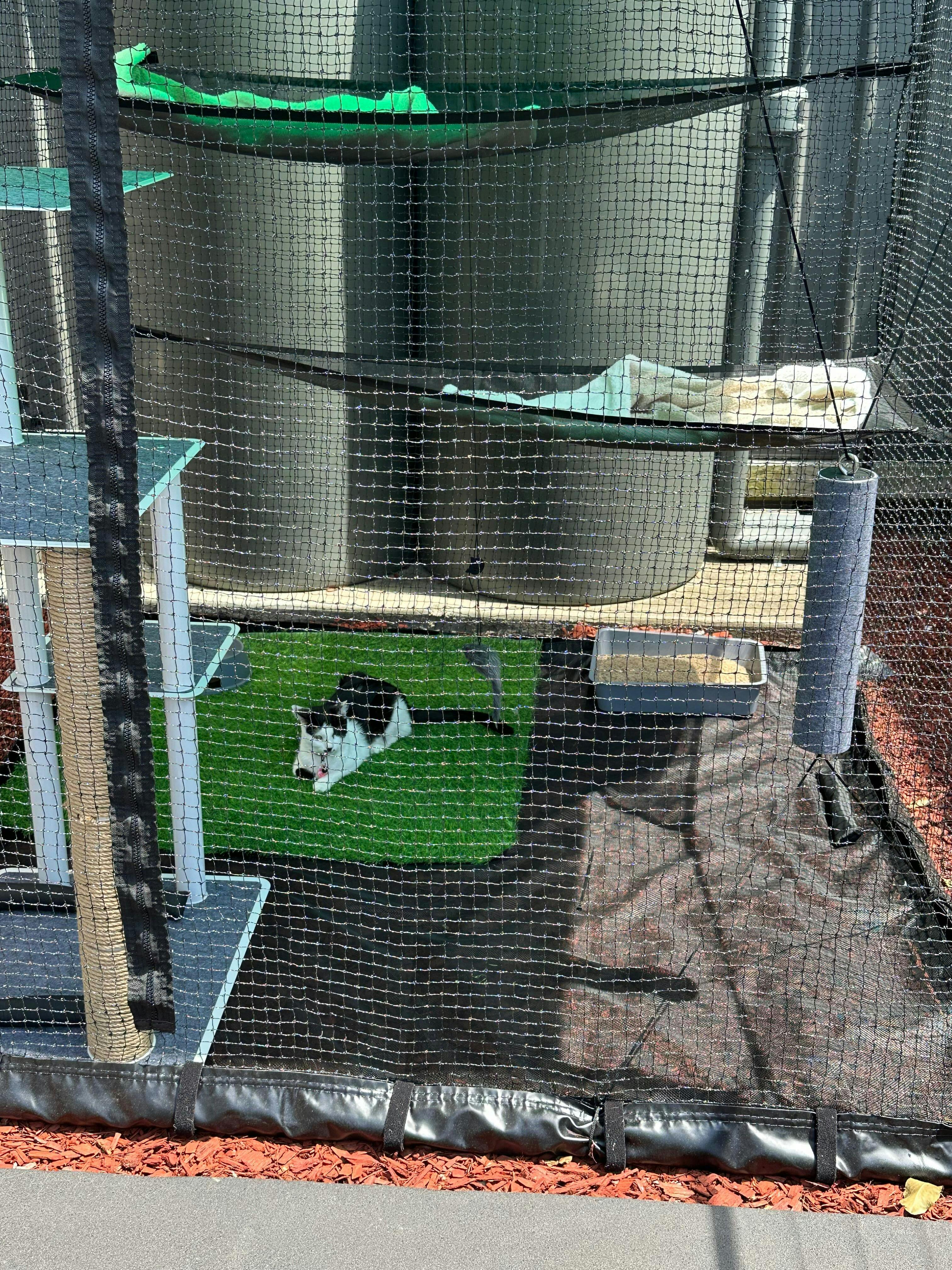 Our gorgeous girl only has one eye so isn’t able to go outside because she’s at risk of hurting herself. She absolutely LOVES her catnet and will sit and watch the birds. It’s amazing enrichment for indoor cats to keep their brain stimulated and to get some outside time. I’m so glad we got the full set of net enclosure, hammocks, scratch posts, outdoor cats tree and a little patch of fake grass…100% worth it!!