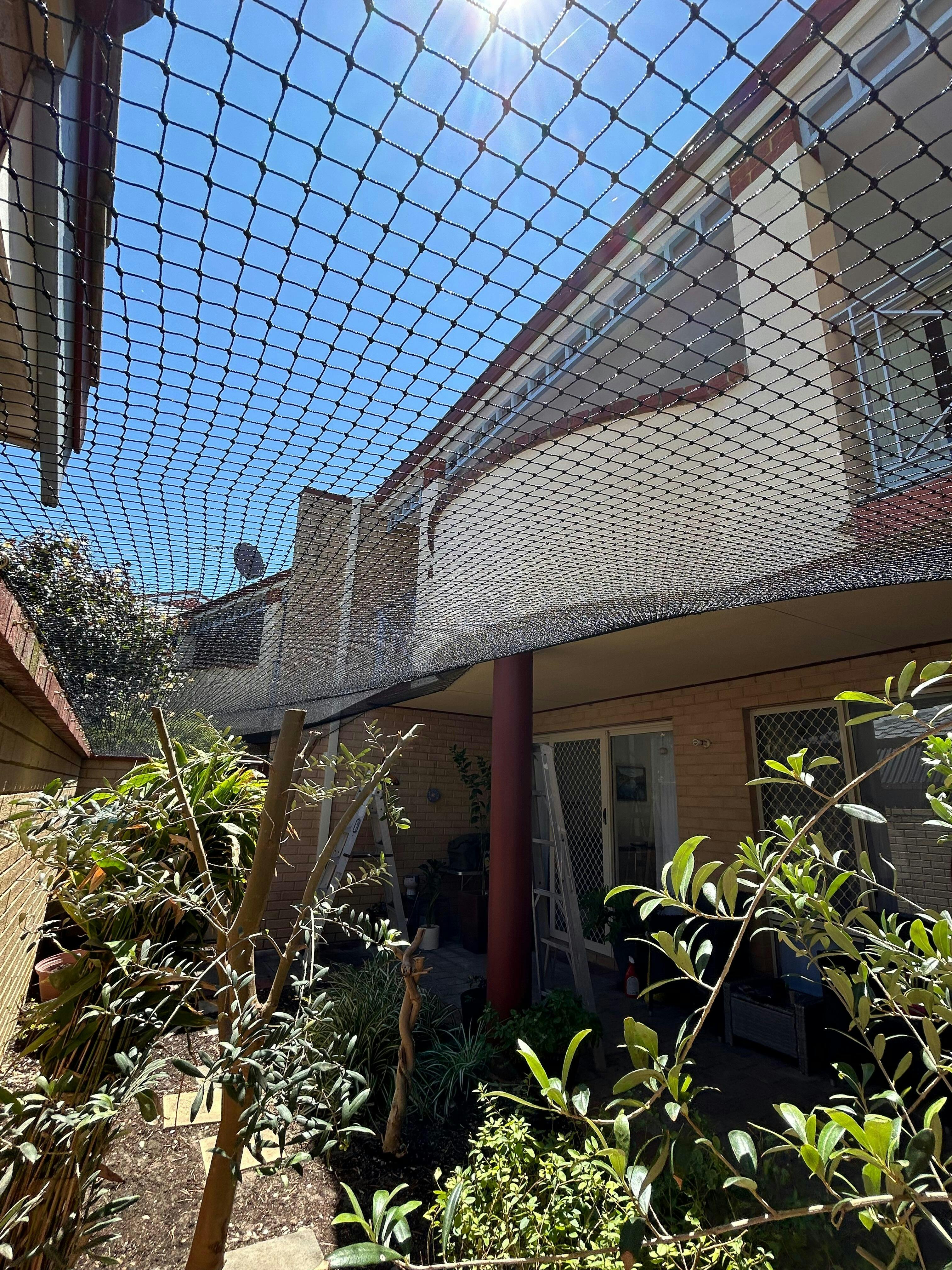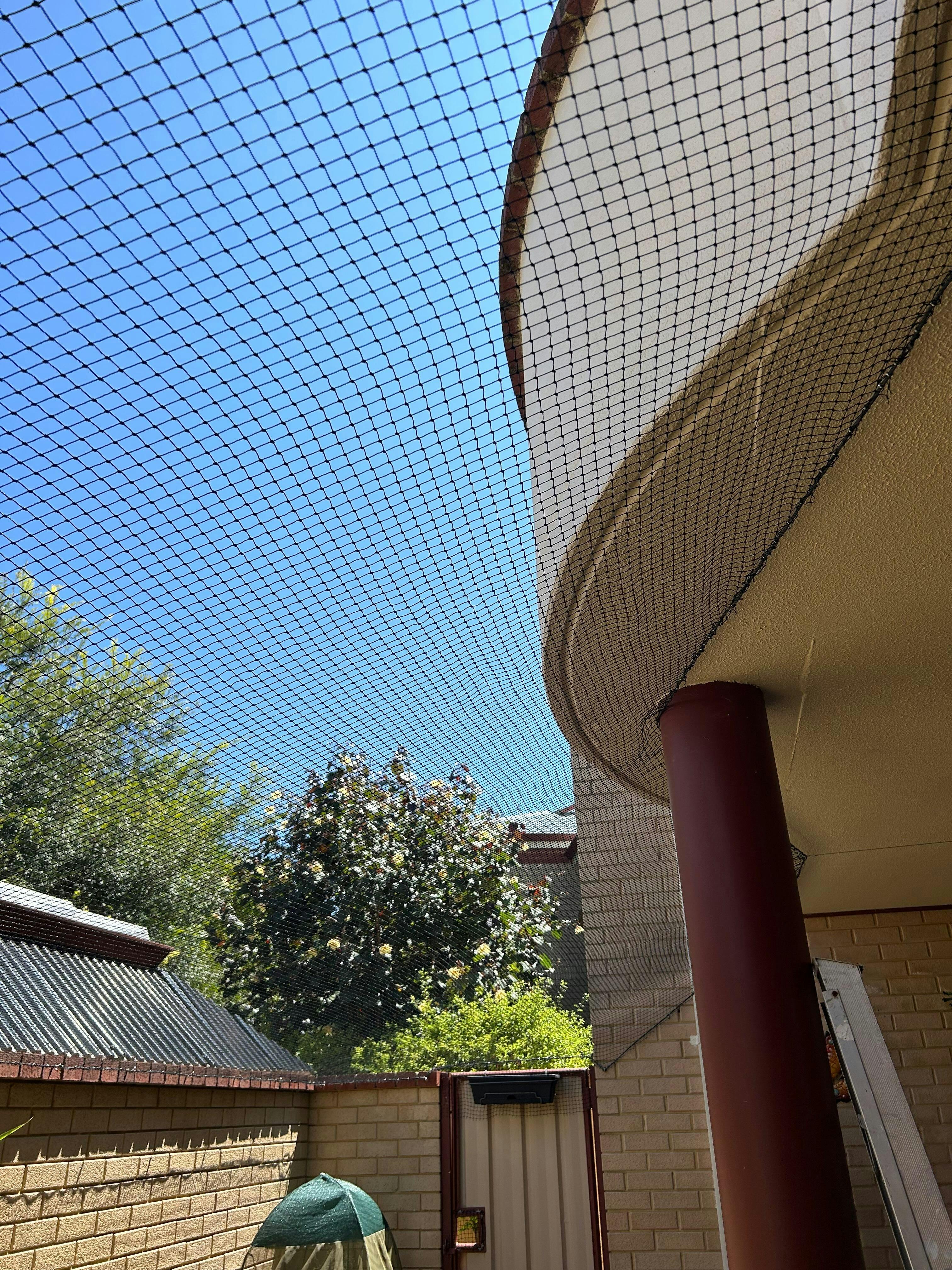 The premium shade sail is a fantastic addition to our cat enclosure. It was easy to attach and provides a good amount of shade, covering half our enclosure and providing enough protection in particular for our lilac Burmese. Highly recommended.