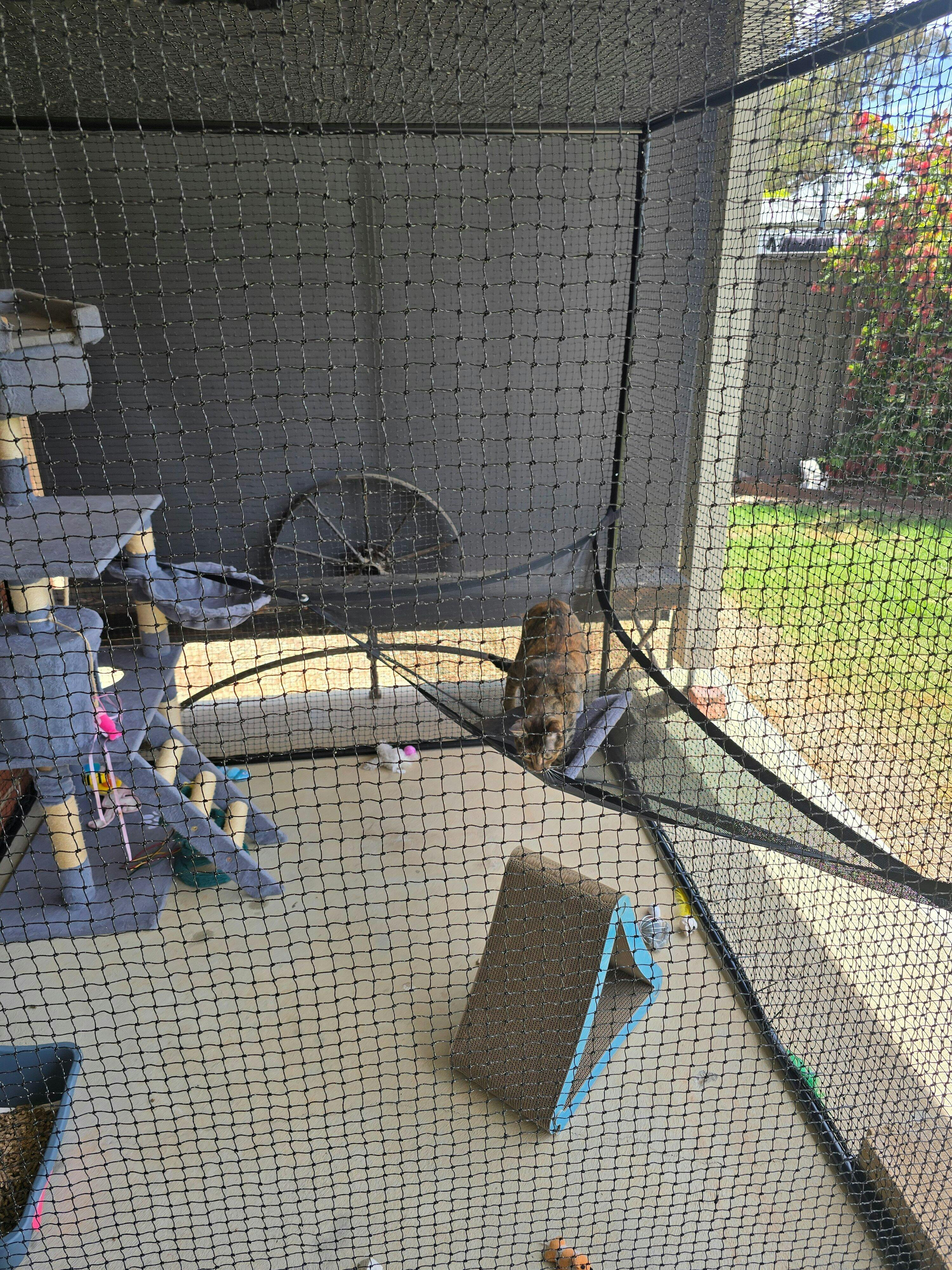 The catio is perfect for out three cats they love it out there with plenty of room to move around and love the hammock. We also got a shade sail which is great would recommend these items 👍🏻
