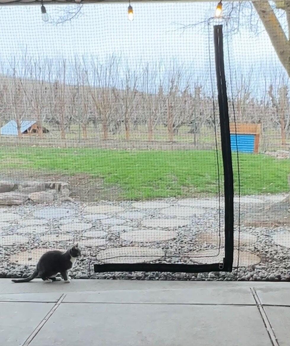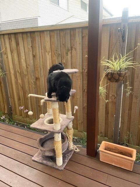 Maverick and Goose absolutely love their new Catnets enclosure. It was a challenge for me to put it together on my own, but the end result is worth it when the boys tear out the back door and leap straight through the netting into their own garden space.