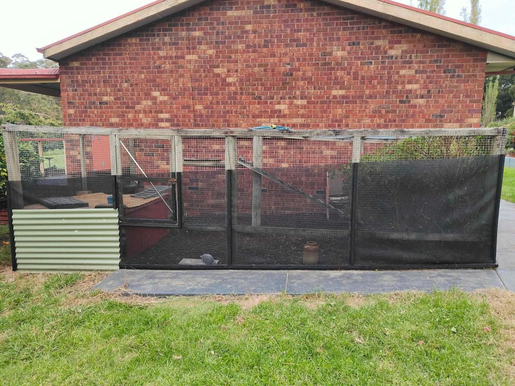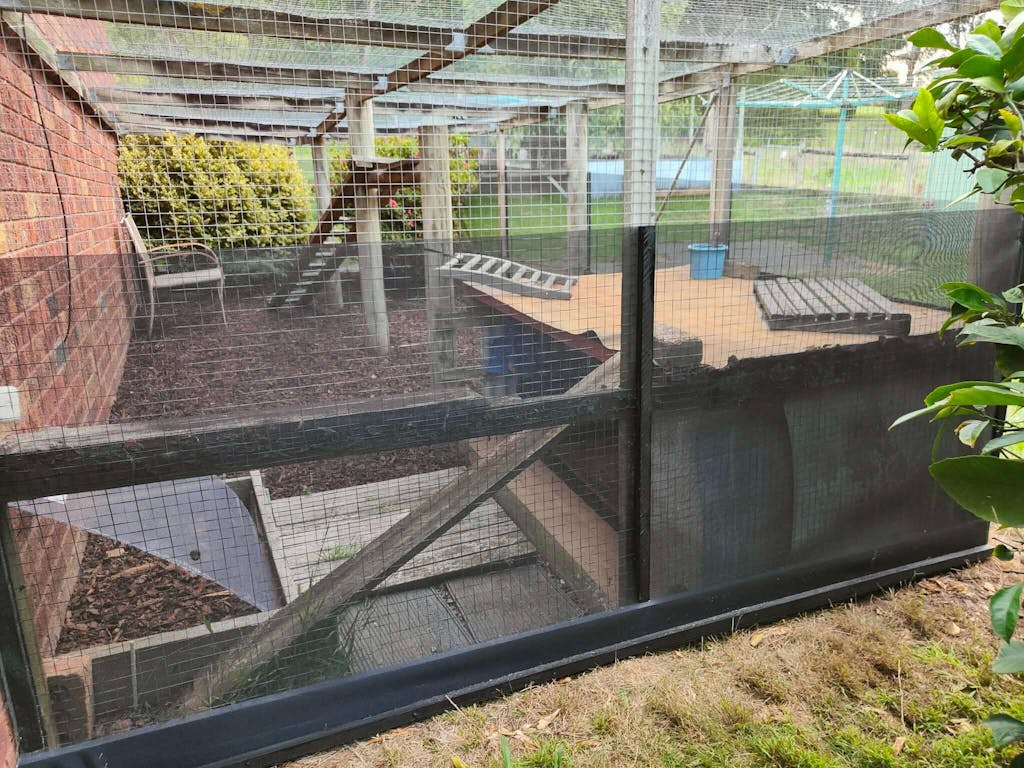 This mesh was attached to the outside wire of a very old cat run, built in around 2000. We needed to add the mesh as we had a small resident red belly, and we were concerned it could get in to the run through the wire.