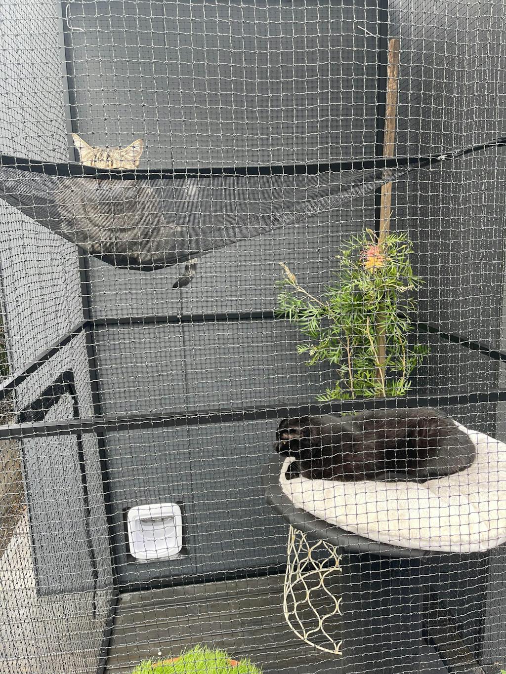 My 2 black sister cats (the Bumbles) absolutely love their outdoor garden area and I love their safety and security!