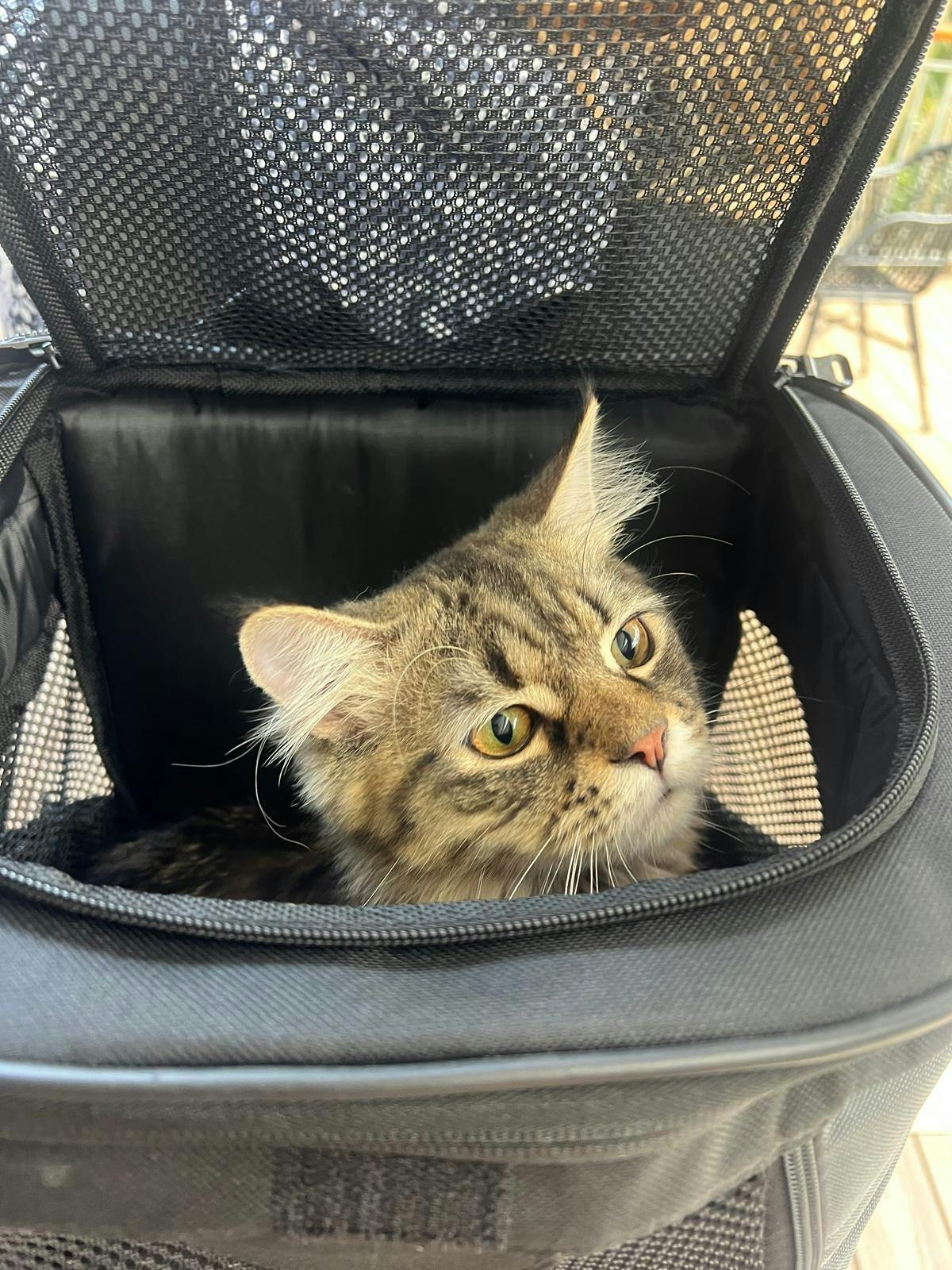 Our little 13wk old fur lady immediately wanted to explore inside the Backpack Cat Carrier. We’re still in training for longer walks but she loved this backpack straight away as she could see the sky and the trees around her thanks to the mesh viewing windows on top, front and sides.