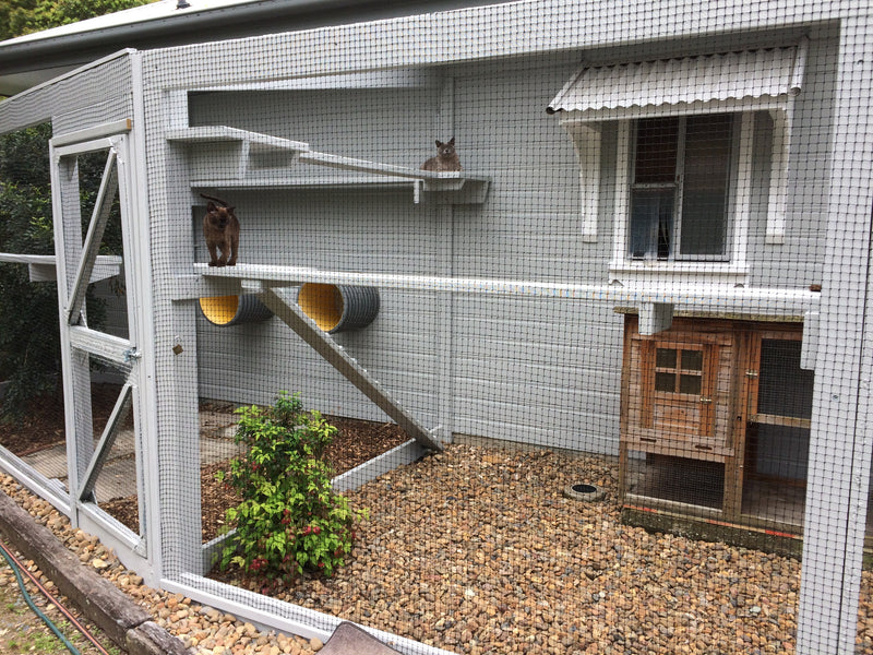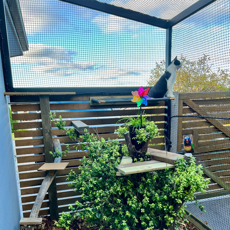 Enjoying the outdoors with your cat can be a healthy experience for the both of you. Spend quality time outdoors within the enclosure, and be sure to enrich your cat’s environment by adding climbing and scratching accessories to satisfy its natural instincts.