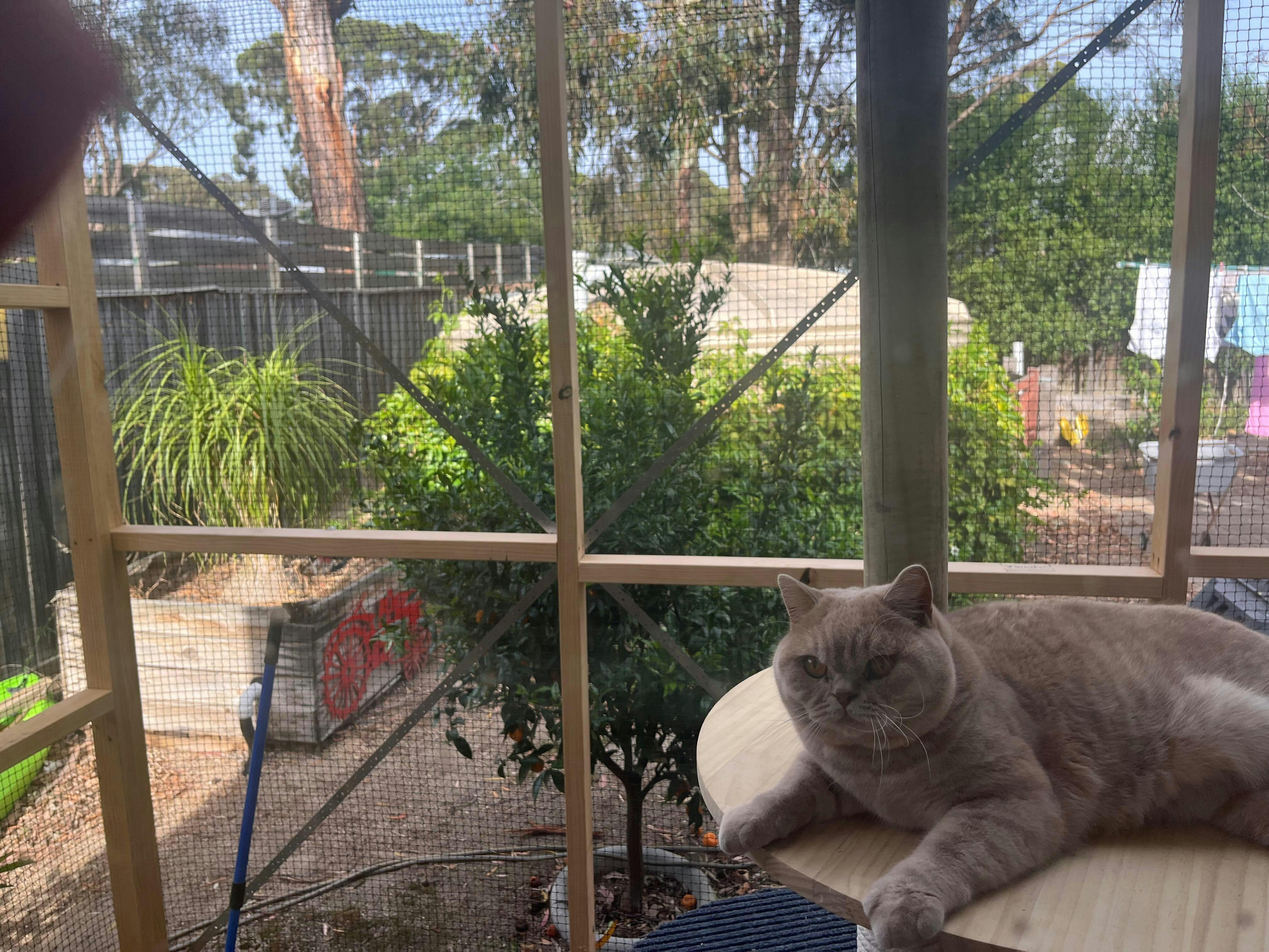 Safety: Due to the size of the netting squares, Catnets recommend kittens (6 months and under) should not be left unattended for prolonged periods within the enclosure. In regards to cat enclosures safety in general, it is advised that all netting is installed as taut as practically possible.