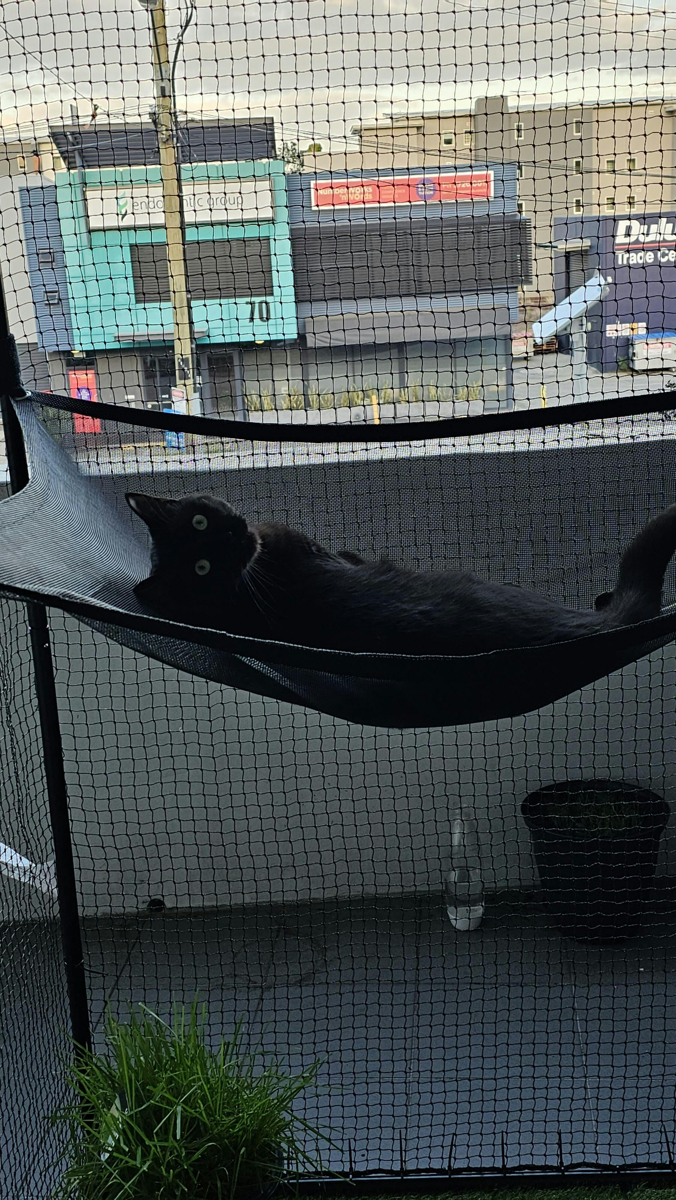 Safety: Due to the size of the netting squares, Catnets recommend kittens (6 months and under) should not be left unattended for prolonged periods within the enclosure. In regards to cat enclosures safety in general, it is advised that all netting is installed as taut as practically possible.